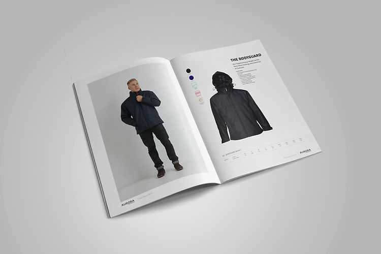 Aurora asked me to clean up their catalogue and deliver a fresh look and feel for their latest activewear line. In response I directed a photoshoot to highlight key pieces with a clean studio backdrop and added an easy-to-read key for all garments.